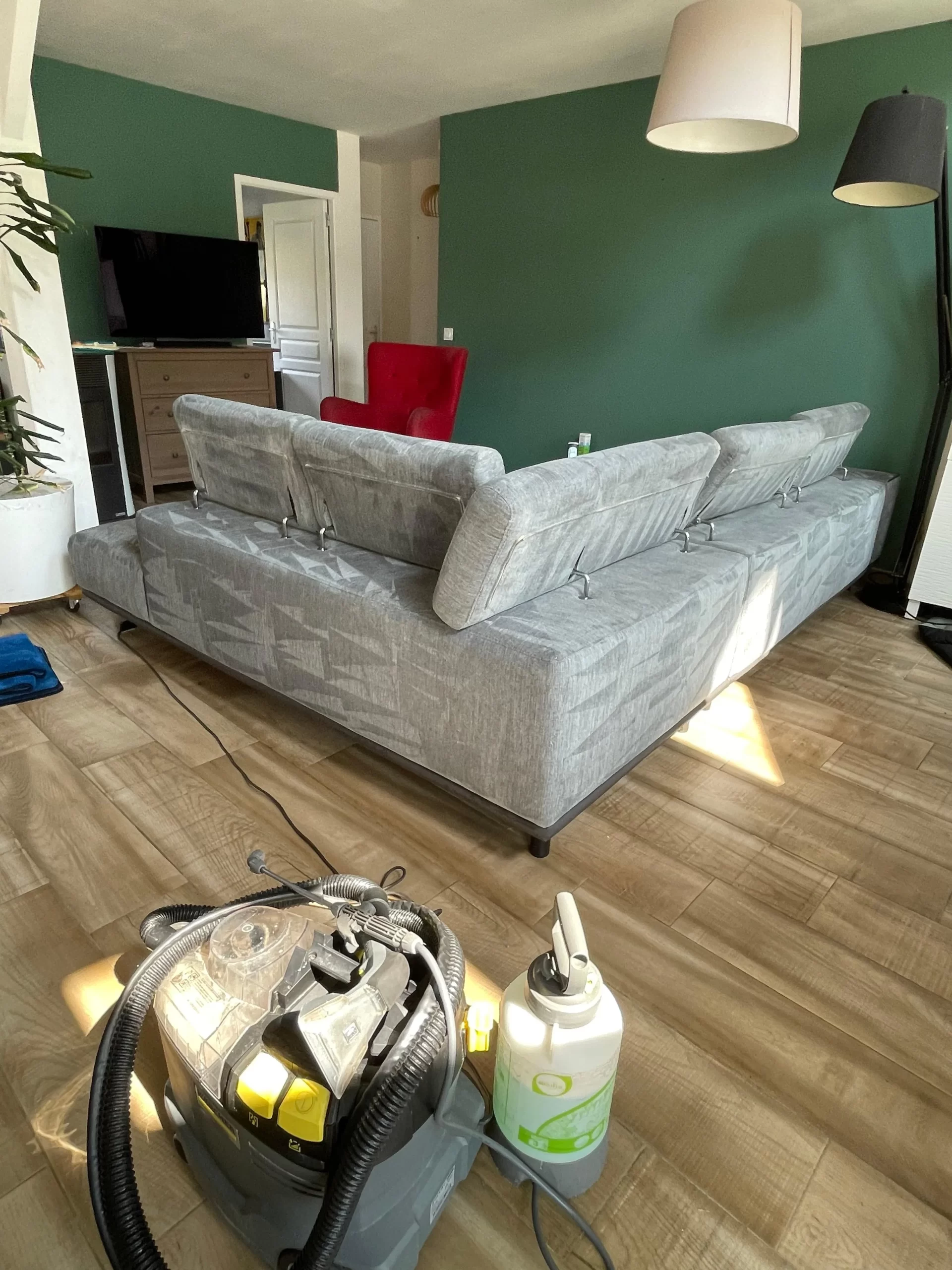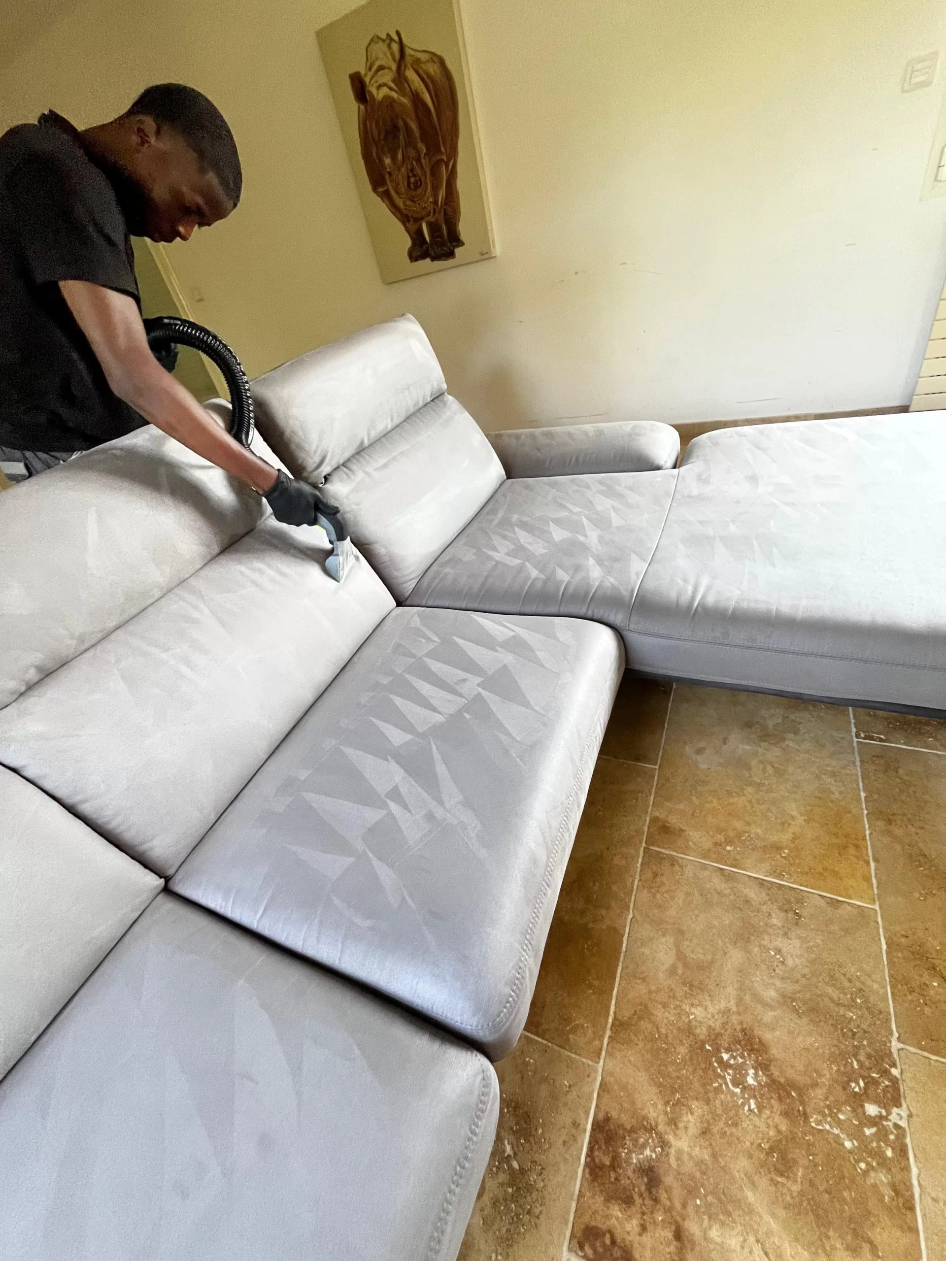 Nous nous déplaçons chez vous avec tout notre matériel professionnel. Plus besoin de démonter, transporter ou attendre des jours pour récupérer votre canapé. Nous intervenons directement dans votre salon, cuisine ou bureau selon vos besoins. Notre équipe respecte votre intérieur et protège vos sols pendant toute la durée de l'intervention. Vous restez chez vous en toute tranquillité pendant que nous redonnons vie à votre mobilier.
